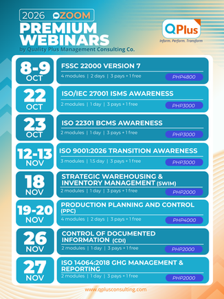 Quality Plus Management Consulting Co. offers a range of webinars—both paid and free—along with in-person seminars and training sessions at our business locations.